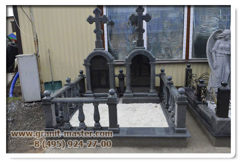 Размер: 2,0х2,0 метра Материал исполнения: памятник - G-654 (тёмно-серый) центральная часть - габбро-диабаз Общая высота памятника: 2,0 метра. Cтоимость: 150.000 руб. Возможно исполнение из других видов гранита. Ограда балюстрада: материал исполнения - G-654 (тёмно-серый) Cтоимость: 180.000 руб. Возможно изготовление по размерам заказчика и из других видов гранита. Возможно исполнение из других видов гранита.
